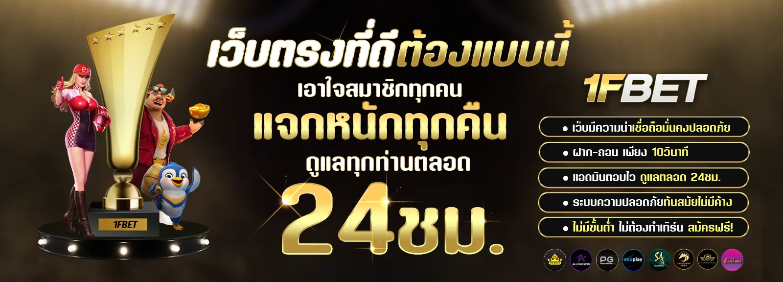 1Fbet เว็บพนันออนไลน์ครบวงจรที่รวบรวมเกมเดิมพันหลากหลายประเภทไว้ในที่เดียว ให้บริการด้วยระบบที่ทันสมัย รองรับการเล่นผ่านทุกอุปกรณ์ทั้งคอมพิวเตอร์และมือถือ เปิดให้บริการตลอด 24 ชั่วโมง พร้อมระบบฝาก-ถอนอัตโนมัติที่รวดเร็วภายในไม่กี่วินาที ภายในเว็บประกอบด้วยเกมกีฬา คาสิโนสด สล็อต และเกมไพ่ต่างๆ จากค่ายดังระดับโลก มาพร้อมโปรโมชั่นสุดพิเศษสำหรับสมาชิกใหม่และเก่า รวมถึงระบบความปลอดภัยมาตรฐานสากลที่ช่วยปกป้องข้อมูลส่วนตัวของผู้เล่นได้อย่างมีประสิทธิภาพ